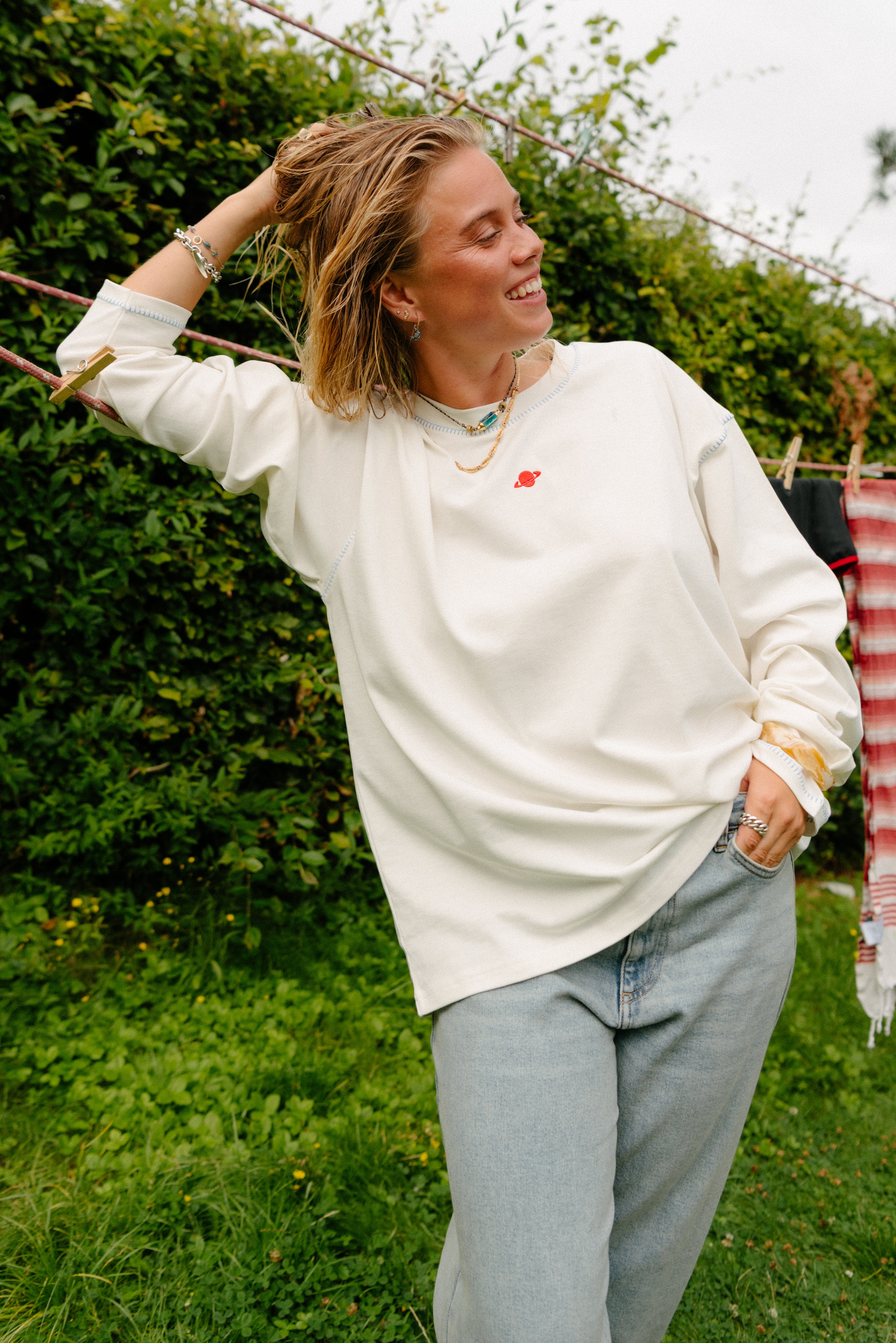 - Afslappet og oversized pasform for komfort.