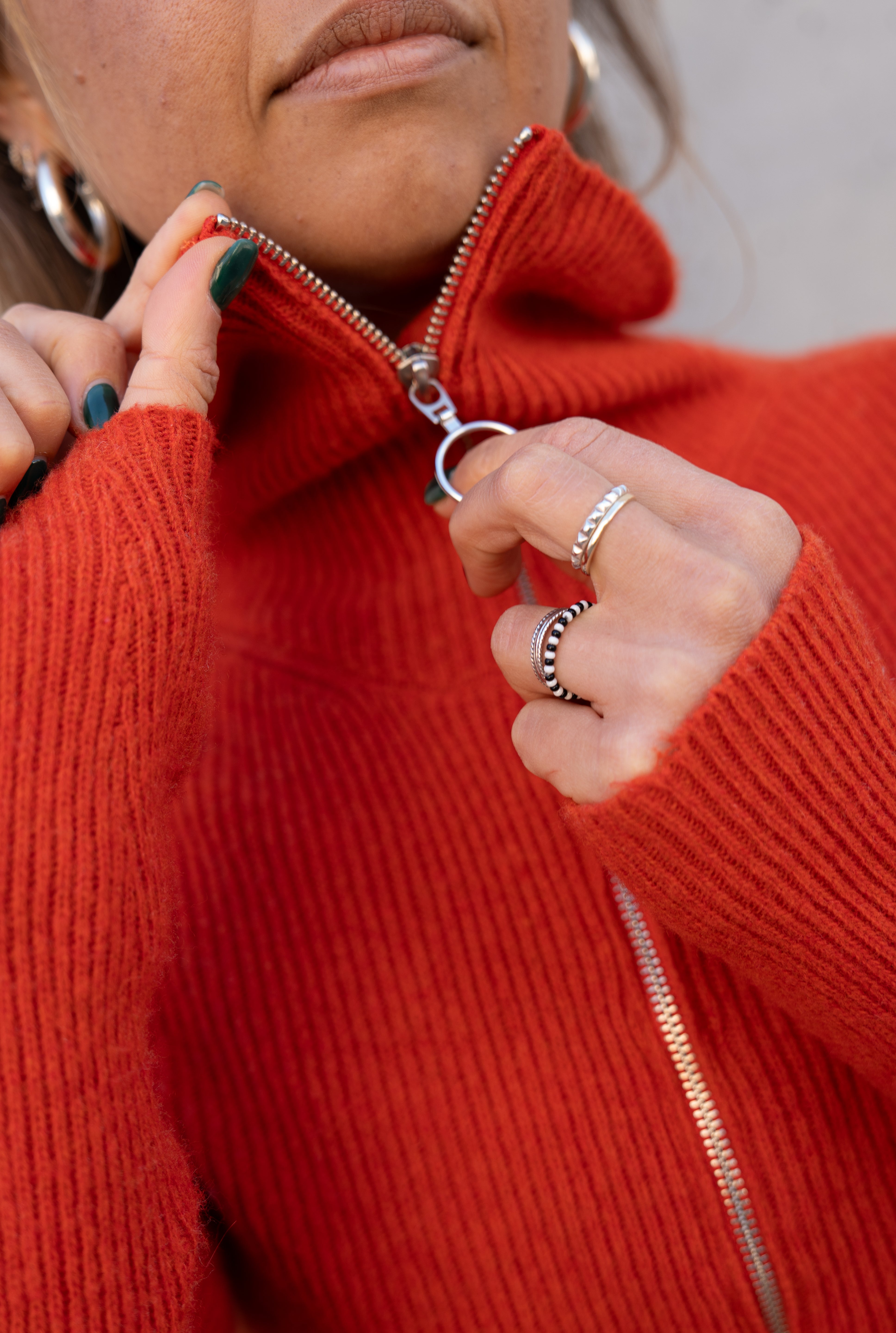 - To-vejs lynlås for alsidige stylingmuligheder og en oversize krave med attityde.