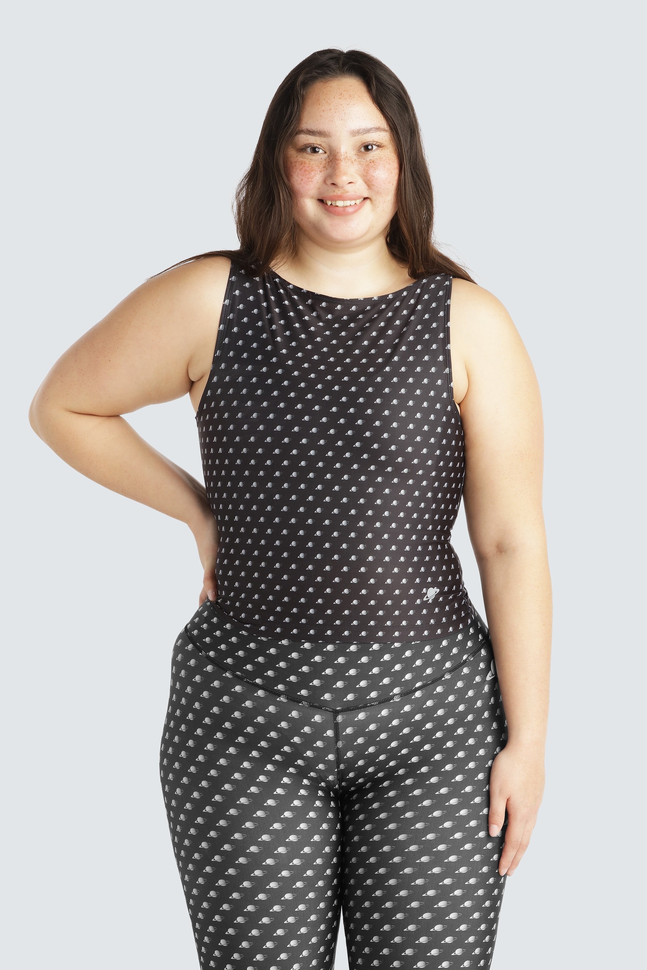 - Sort top med små grå gradient planeter trykt overalt