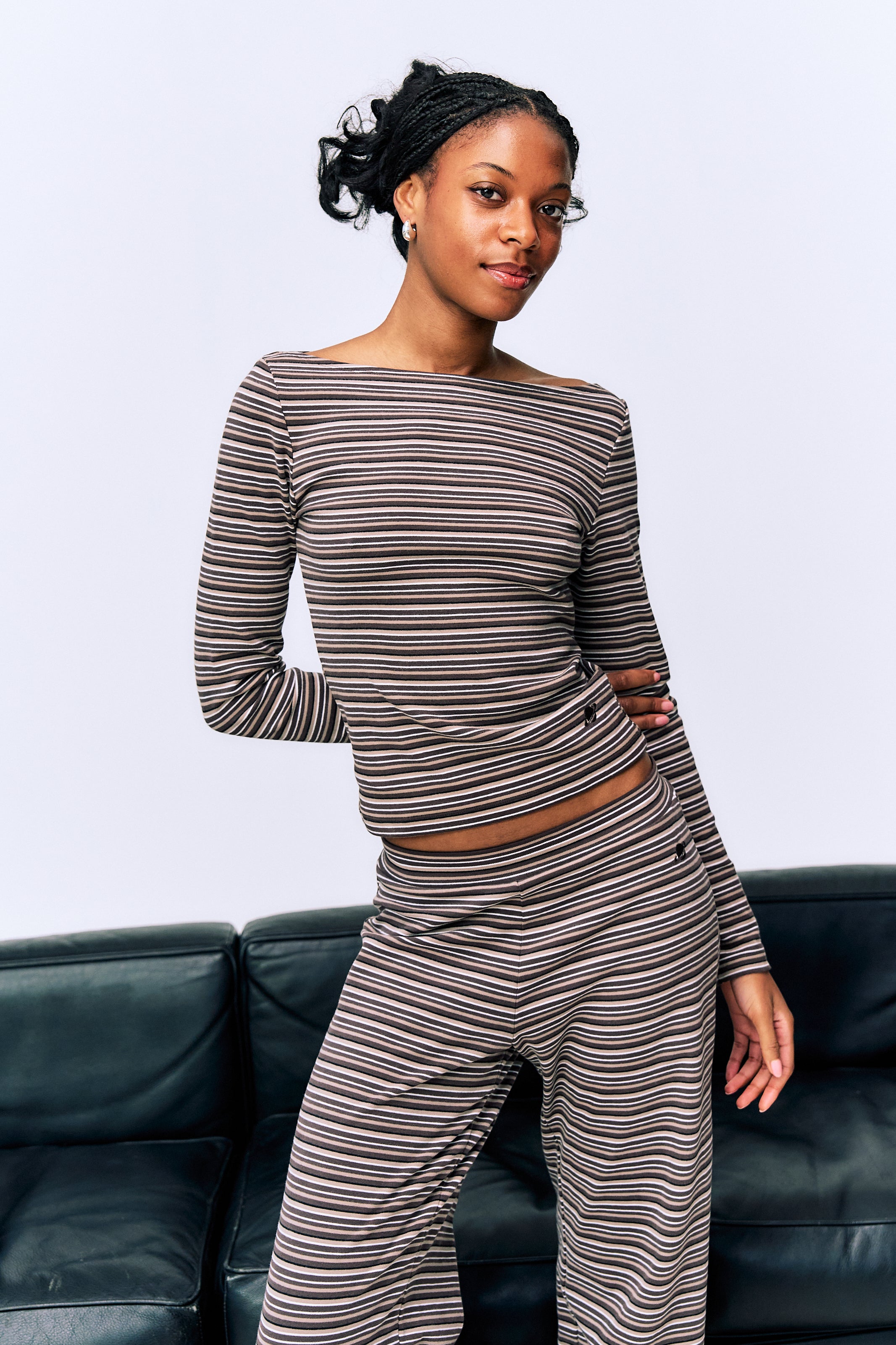 Med bred bådhals og tætsiddende pasform.