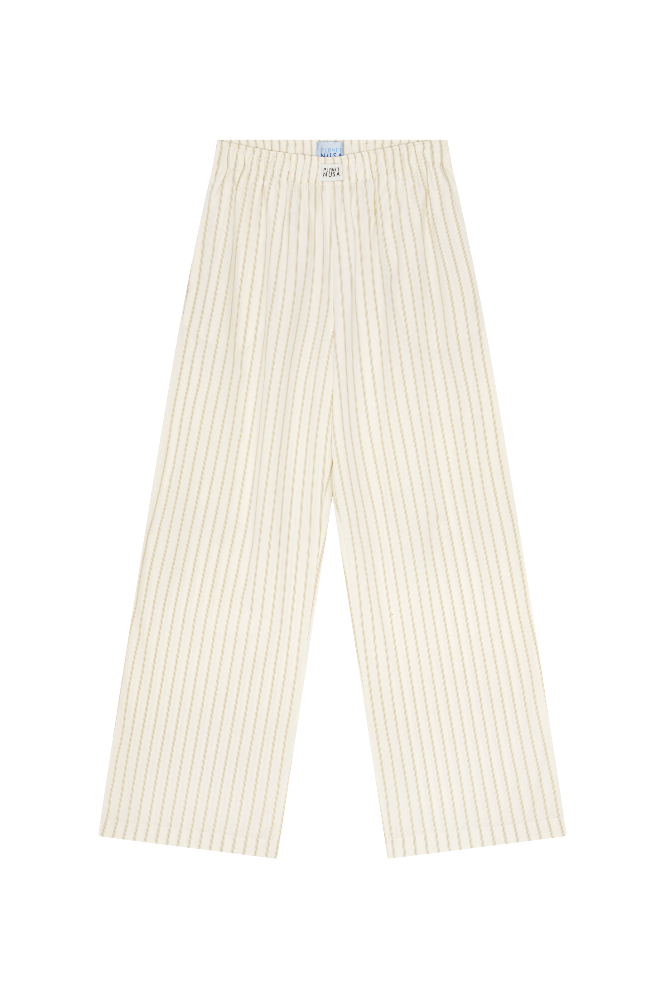 - Pyjamasbukser i hvid med beige striber – ideel til afslapning.