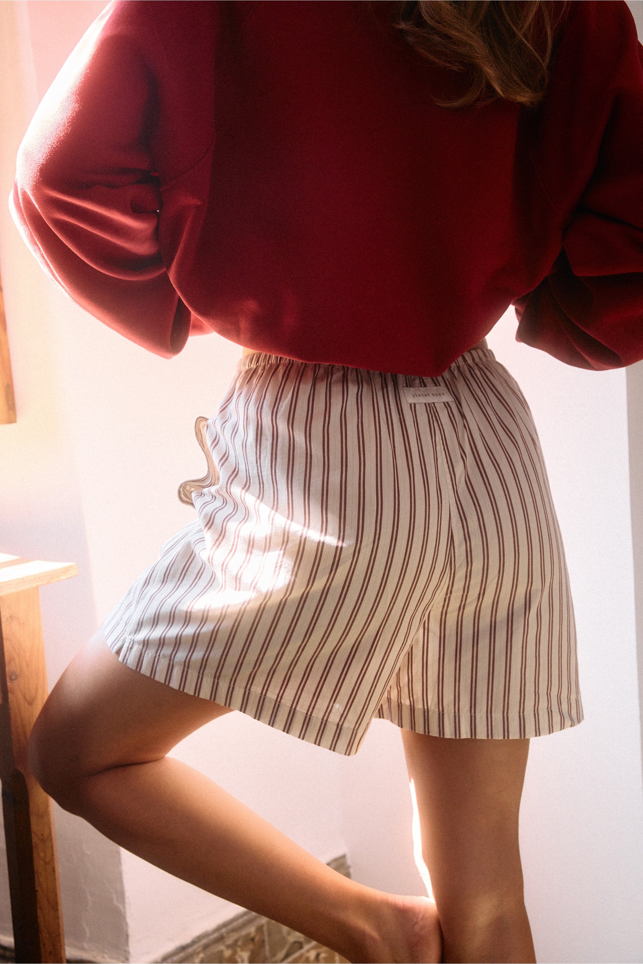- Stribede poplin shorts med sidelommer.