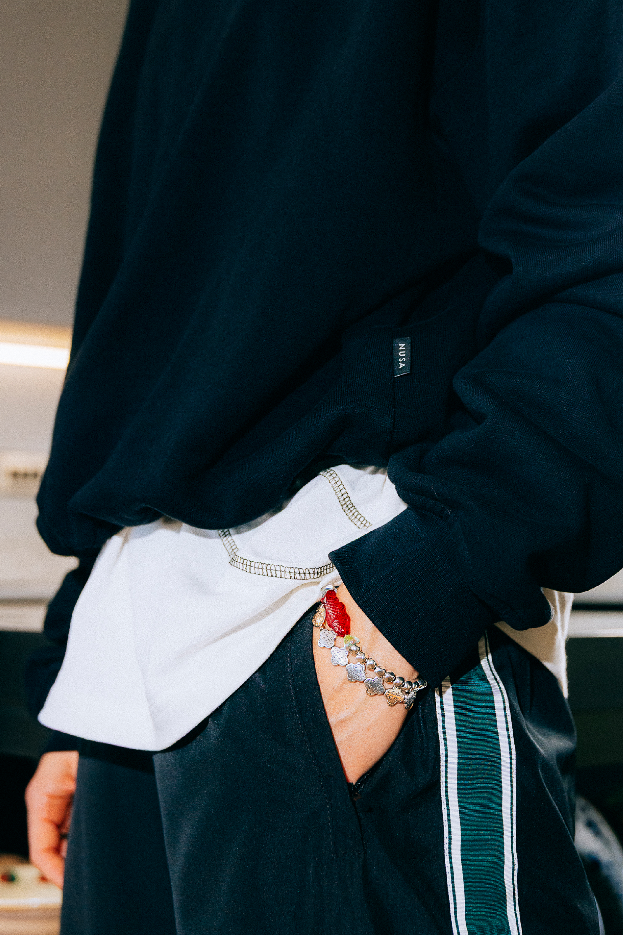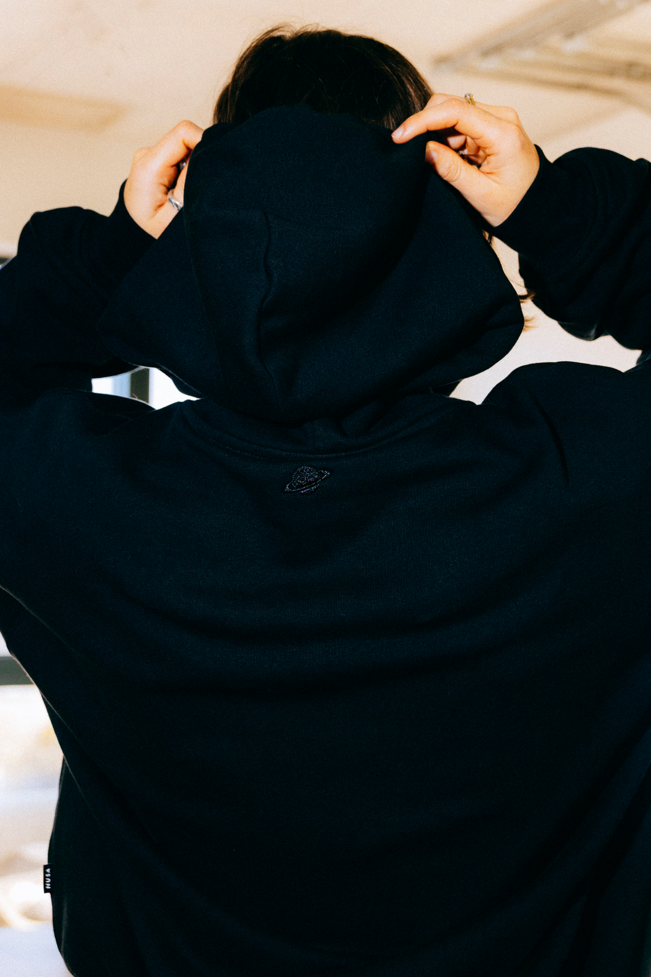 - Woven label detail at back