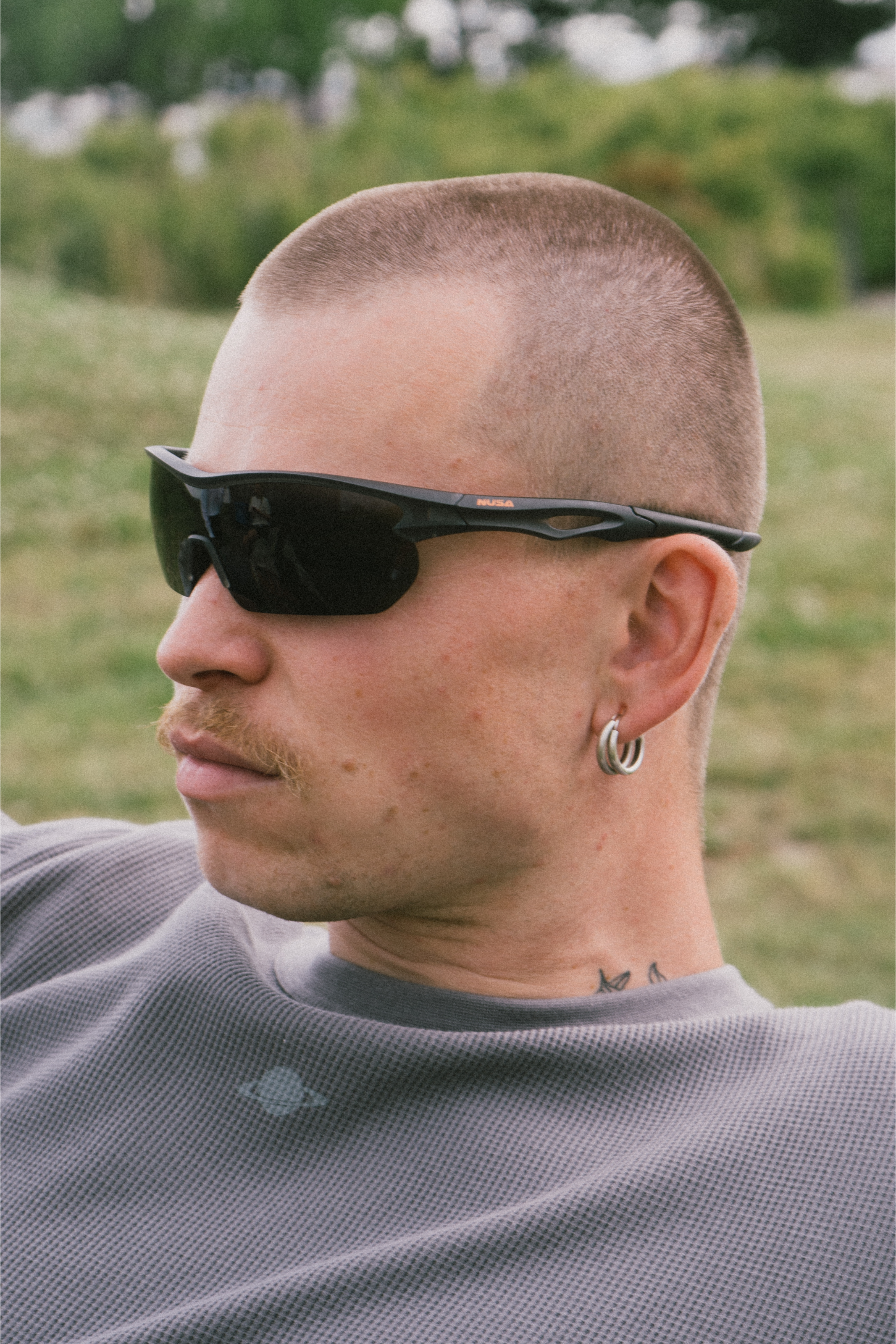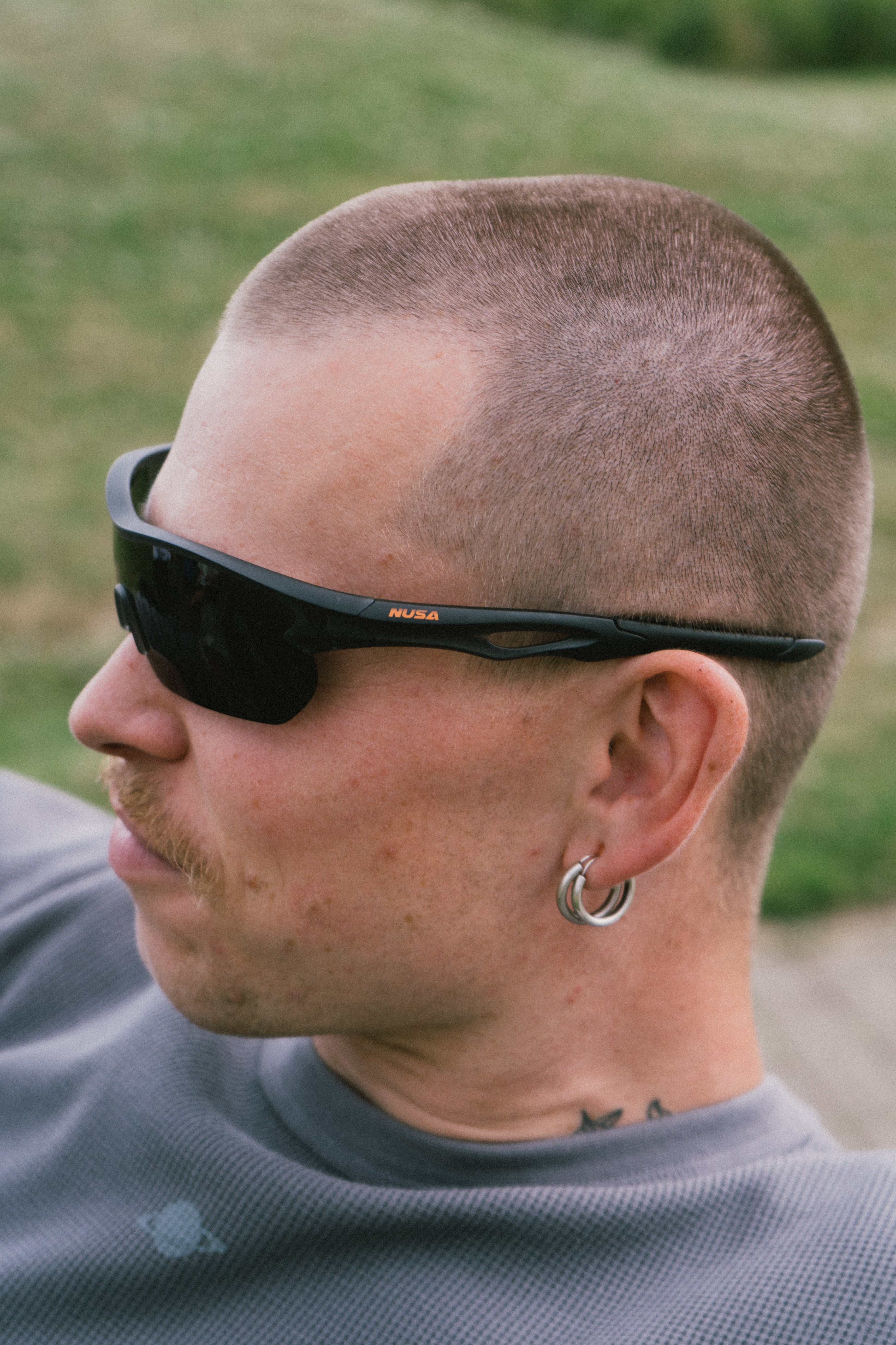 - Small Nusa logo in orange on the sides